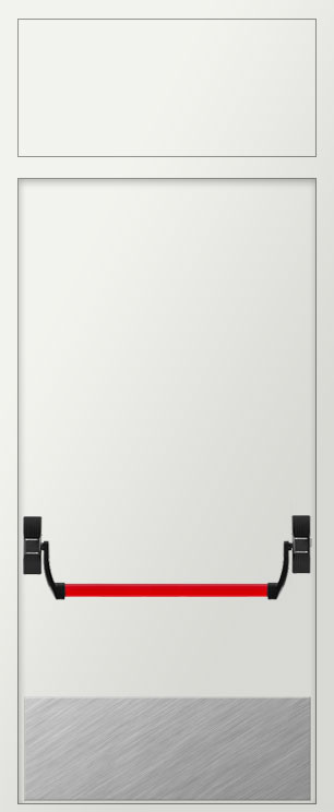 Дверь противопожарная металлическая EIS60 Антипаника с фрамугой и накладкой из нержавеющей стали
