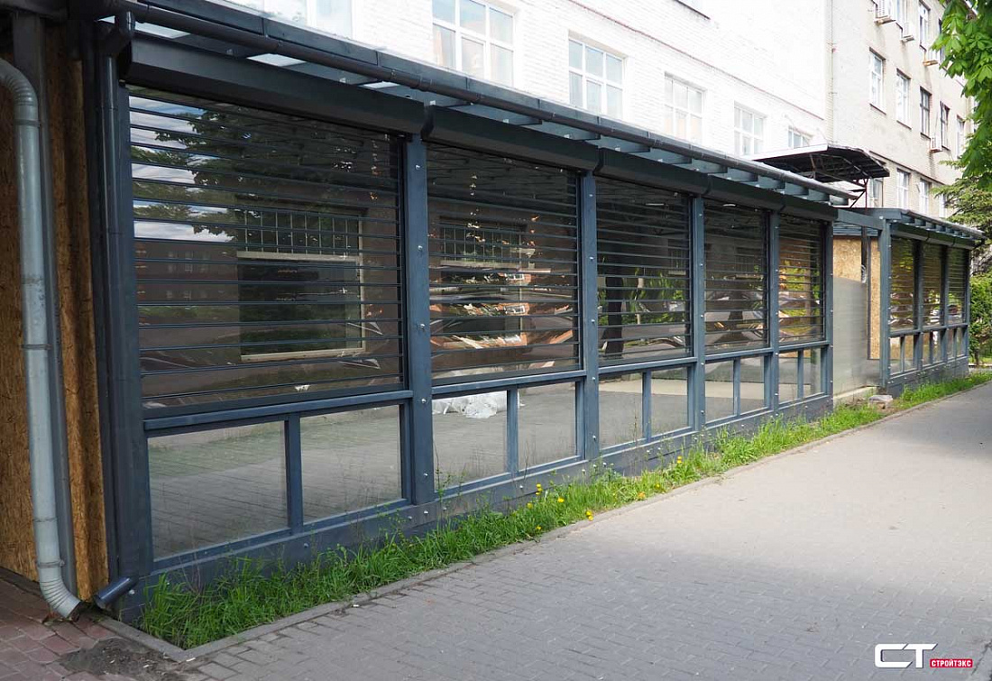 Перейти в каталогМы вносим свой вклад в порядок на улицах. Что, как не козырек, обеспечит защиту от ветра и разлетания мусора? Сама конструкция выглядит эстетично и прослужит долго.